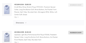 Once you select a shirt, you can change features like collar design. I chose their favored “Presidential Spread” for my first shirts but have moved toward their “Franklin Spread” as I don’t wear ties often. The Franklin Spread holds a litter closer to the neck when unbuttoned. You can opt for a button-down collar, which I occasionally use when purchasing custom dress shirts. You can add collar or cuff accents and even a monogram for an extra charge. All of their dress shirts default to a “split yoke” style for the upper back and shoulders. I recommend keeping this for a clean, timeless look.